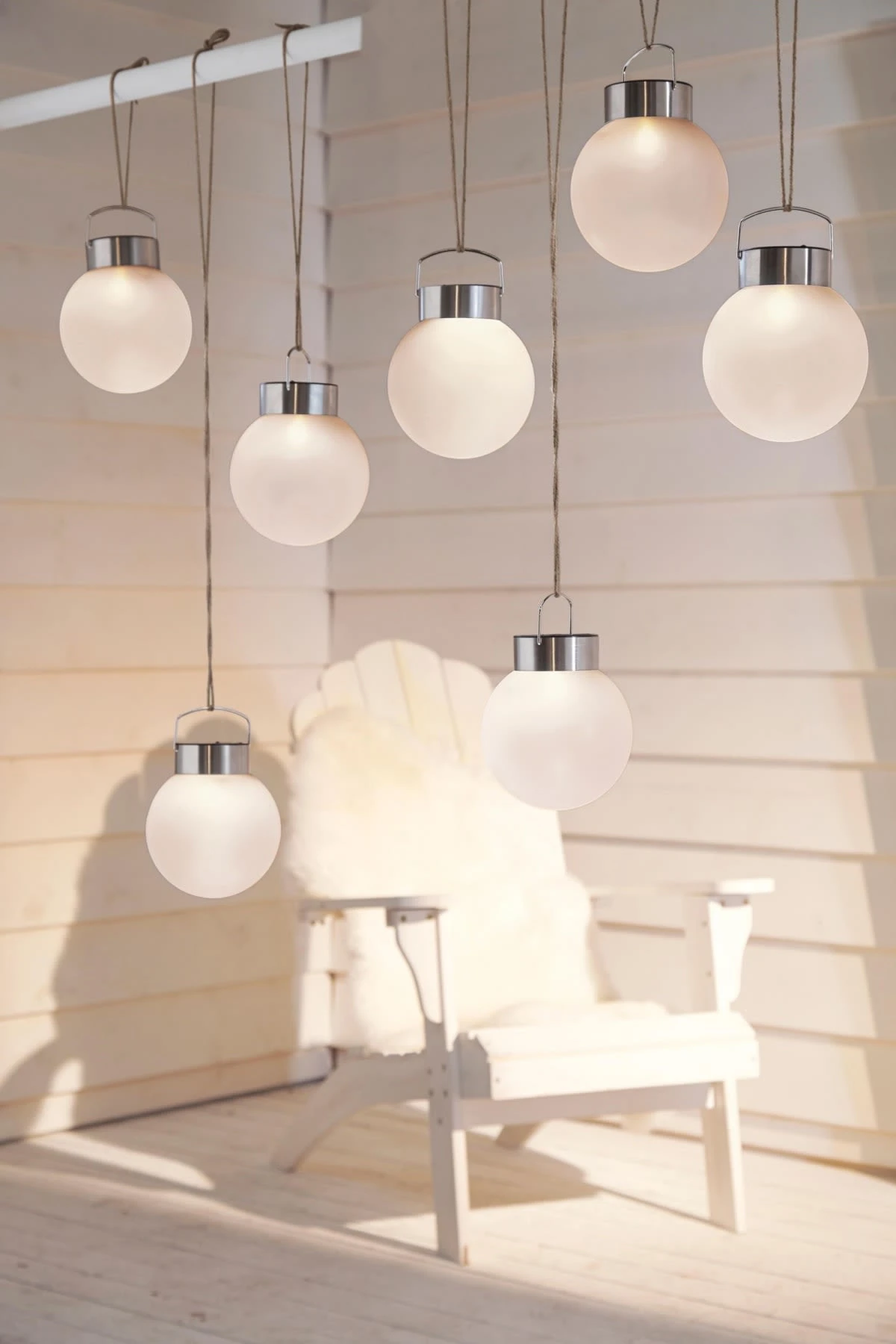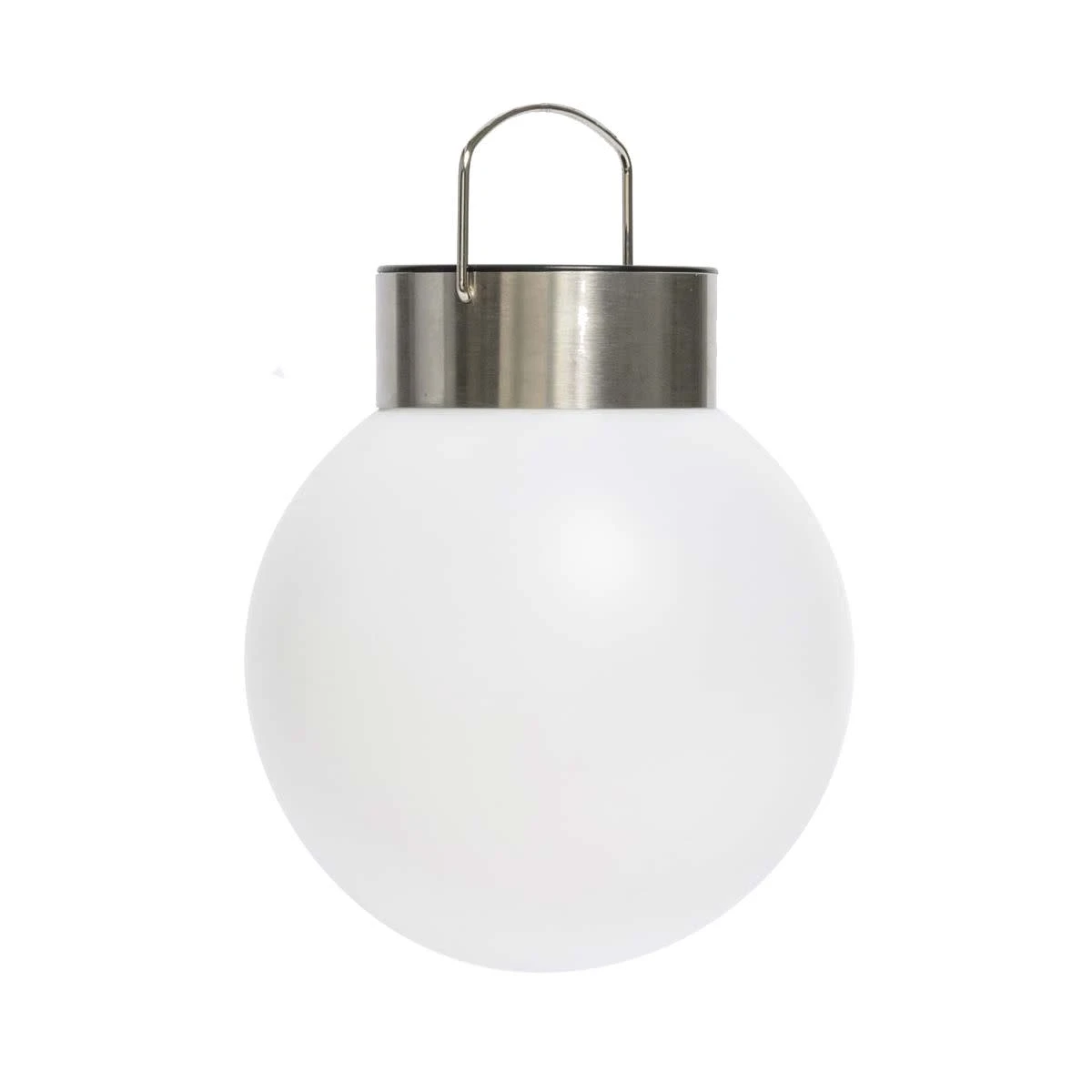 2 Solarleuchten im Set! Moderne weiße Kugeln mit silberfarbener Fassung, erleuchtet durch je 1 weiße LED, mit Dämmerungsautomatik. Akku: je 1 x 1,2V/AA/Ni-MH/ 600mAh, der Akku ist im Lieferumfang enthalten und austauschbar.