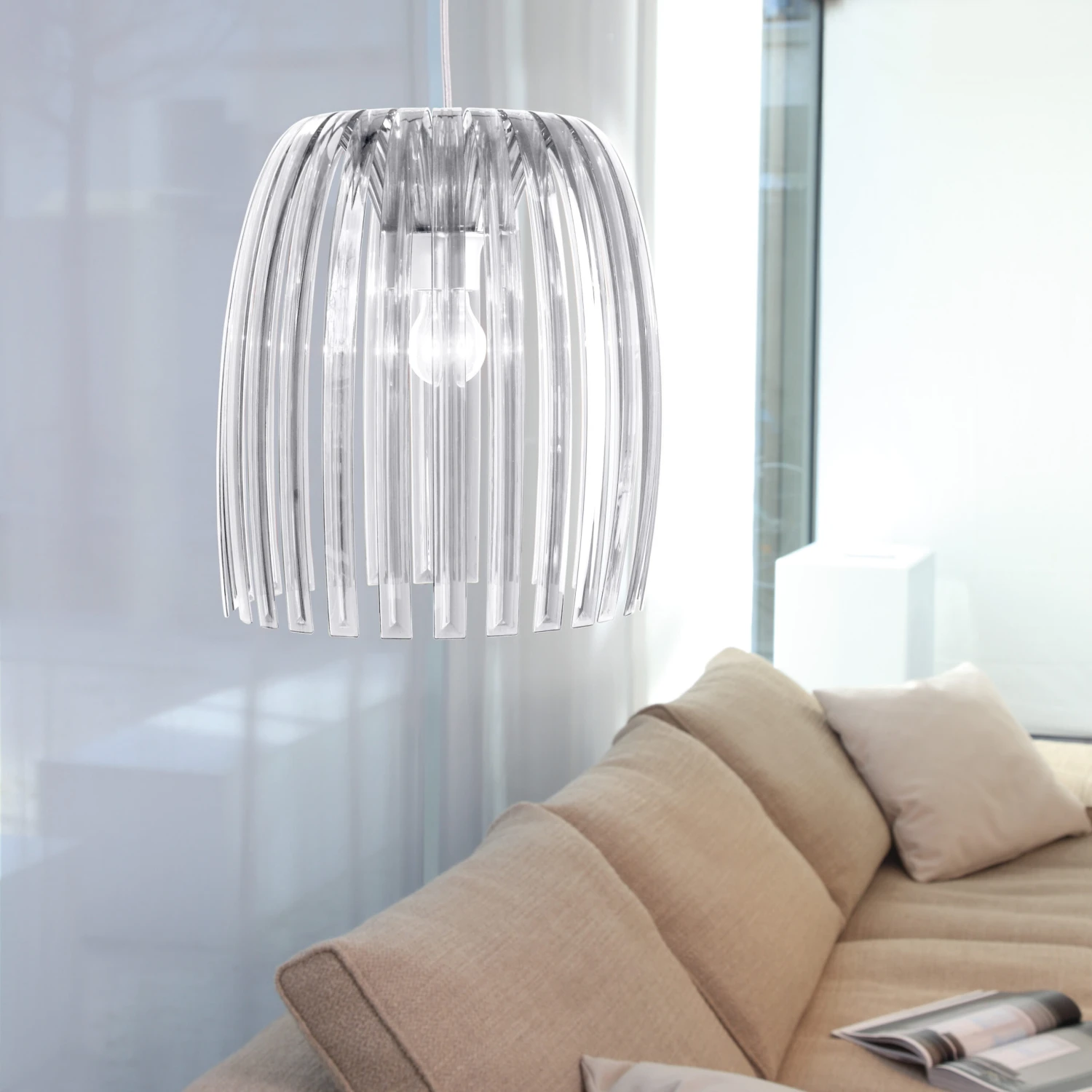 Erleuchtung de luxe. JOSEPHINE verkörpert mit ihrer geschwungenen Form den Archetyp einer Pendelleuchte, wohl vertraut in unserer Erinnerung und dennoch wieder völlig neu und inspirierend durch die moderne Umsetzung. Ihr Design ist jung und kühn und erhält Spannung durch den konvexen Facettenschliff der einzelnen Lamellen, der das transparente Material wie einen Kristall funkeln lässt. Die Leuchte transportiert die Opulenz eines Lüsters, ohne dabei jedoch schwer und überladen zu wirken. Die filigrane Struktur verleiht ihr graziöse Leichtigkeit und lässt sie förmlich schweben. JOSEPHINE erhellt Restaurants genauso schön wie private Räume zuhause. Auch im Büro macht sie eine gute Figur in Konferenzräumen oder am Empfang. Der Lampenschirm lässt sich mit edlen Kabelgarnituren individuell jedem Einrichtungsstil anpassen. •moderne Interpretation der klassischen Pendelleuchte•Brillanz durch Facettenschliff-Optik•extra große Farbauswahl•unzerbrechlich & leicht•für Leuchtenfassung E27•Kabelgarnitur bitte separat bestellen•Leuchtmittel nicht enthalten•100% CO2-neutral KOZIOL THERMOPLASTIC