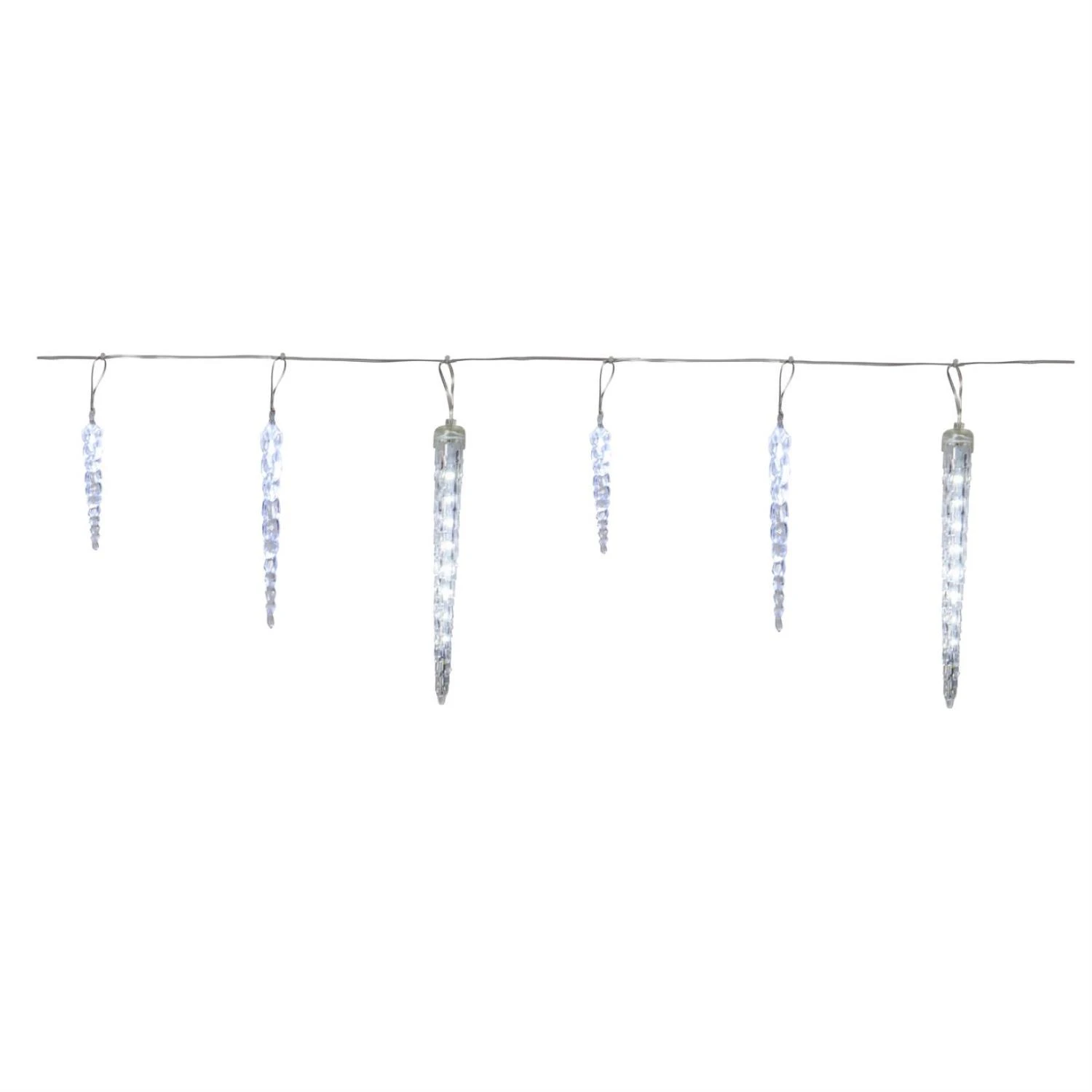LED Lichterkette Eiszapfen – 24 Eiszapfen – kaltweiße LED – Dauerlicht/Lauflicht – L: 7m – f. Außen Winterliche Lichterkette mit 24 leuchtenden Eiszapfen aus Acryl. Die Eiszapfen leuchten in kaltweißem Licht und passen so perfekt zu einer richtig schönen Außenbeleuchtung in der kalten Jahreszeit.