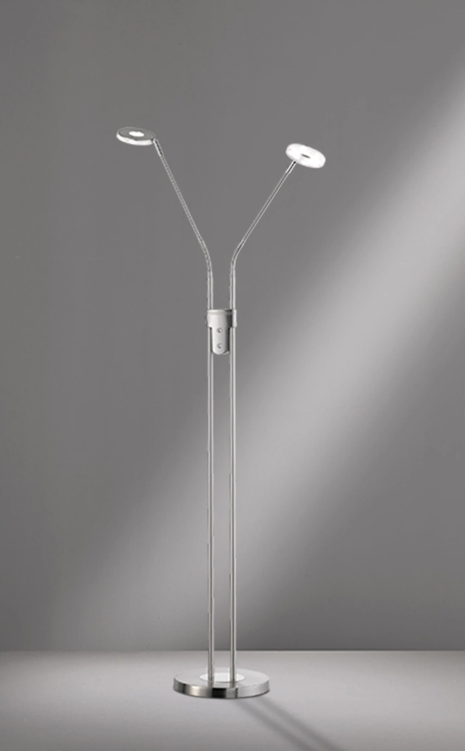 Die nickelfarben matte Oberfläche mit einem Acrylglas satiniert wirkt modern. Mit einer Ausladung von 40 cm und einer Höhe von 150 cm ist dieser Artikel für Flure oder Wohn- und Essbereichen bestens geeignet. Schönes Licht ist garantiert. Durch einen Tastdimmer direkt an der Leuchte ist stufenloses Dimmen für die Gemütlichkeit gegeben.