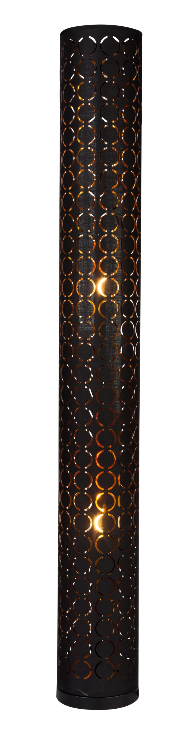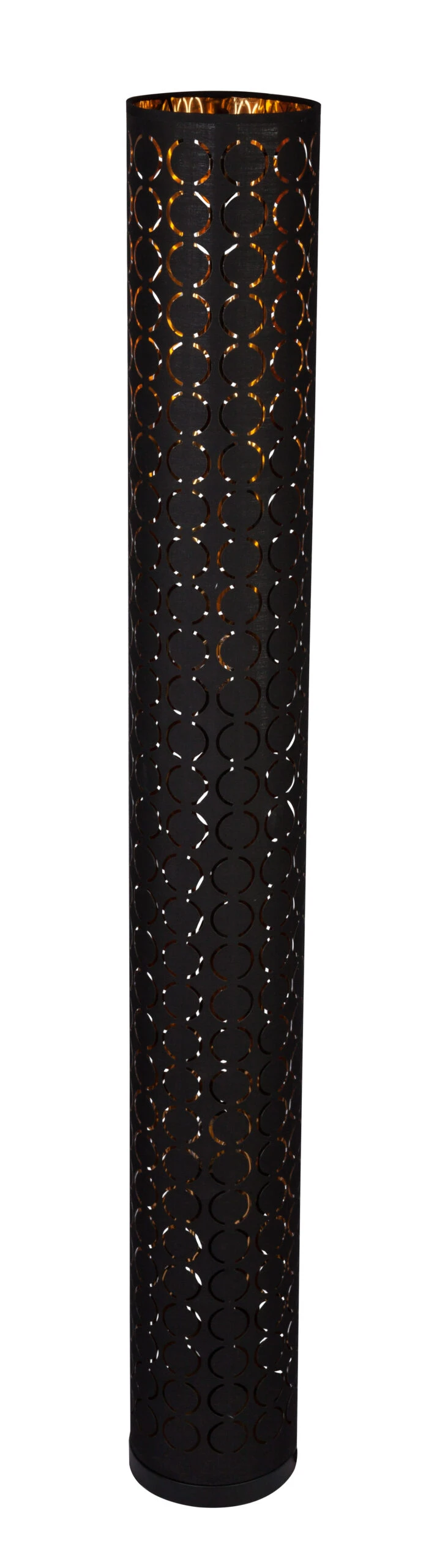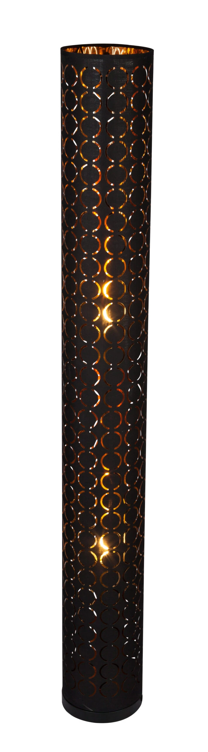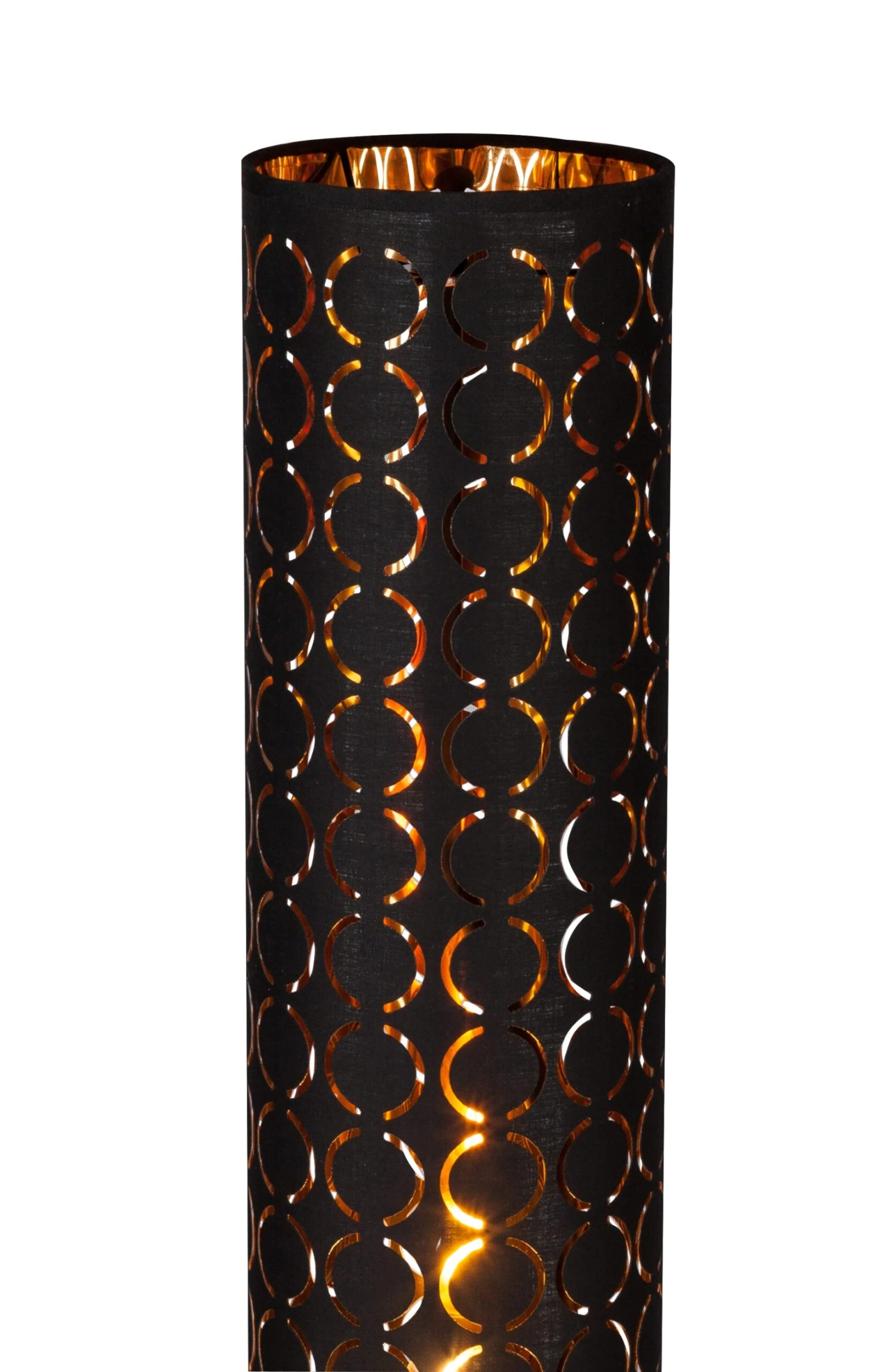 Stehleuchte Metall schwarz, Textil schwarz, goldfarben, Fußtrittschalter im Kabel, Schirm mit Ringstanzungen, ø: 150mm, H: 1190mm, Kabellänge 1800mm, exkl. 2x E27 40W 230V