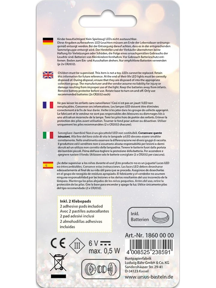 – Inhalt: 2 LED-Deko-Lichter, 4 Batterien, 2 Klebepads