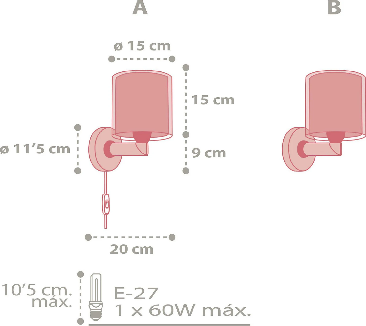 – Höhe der Wandbefestigung: ca. 11,5 cm